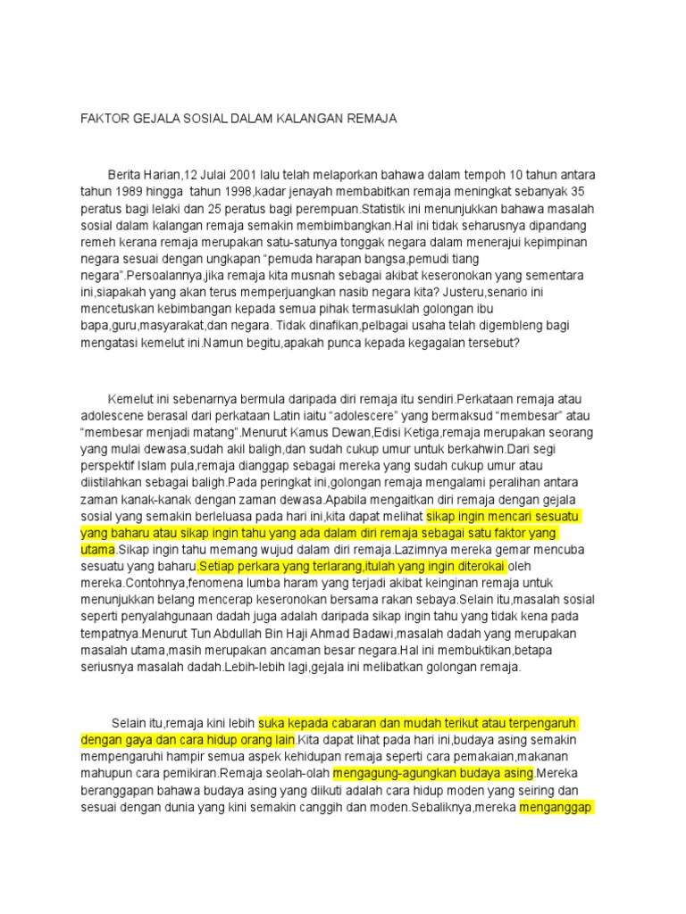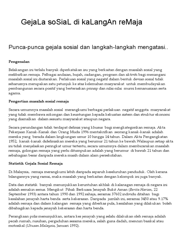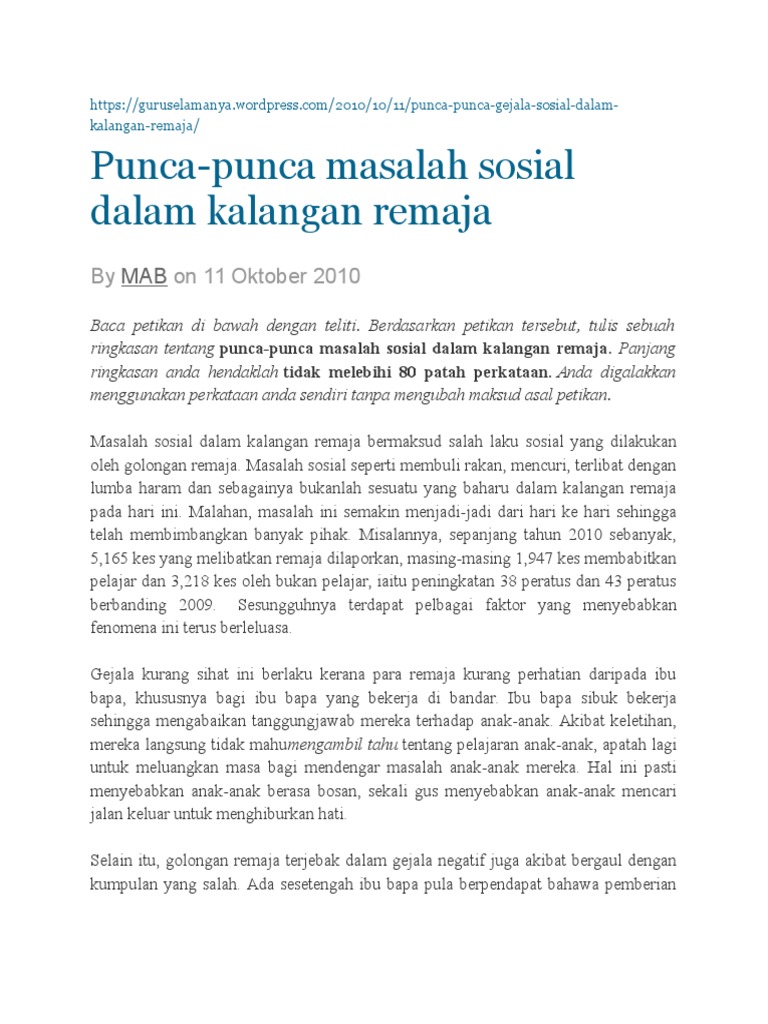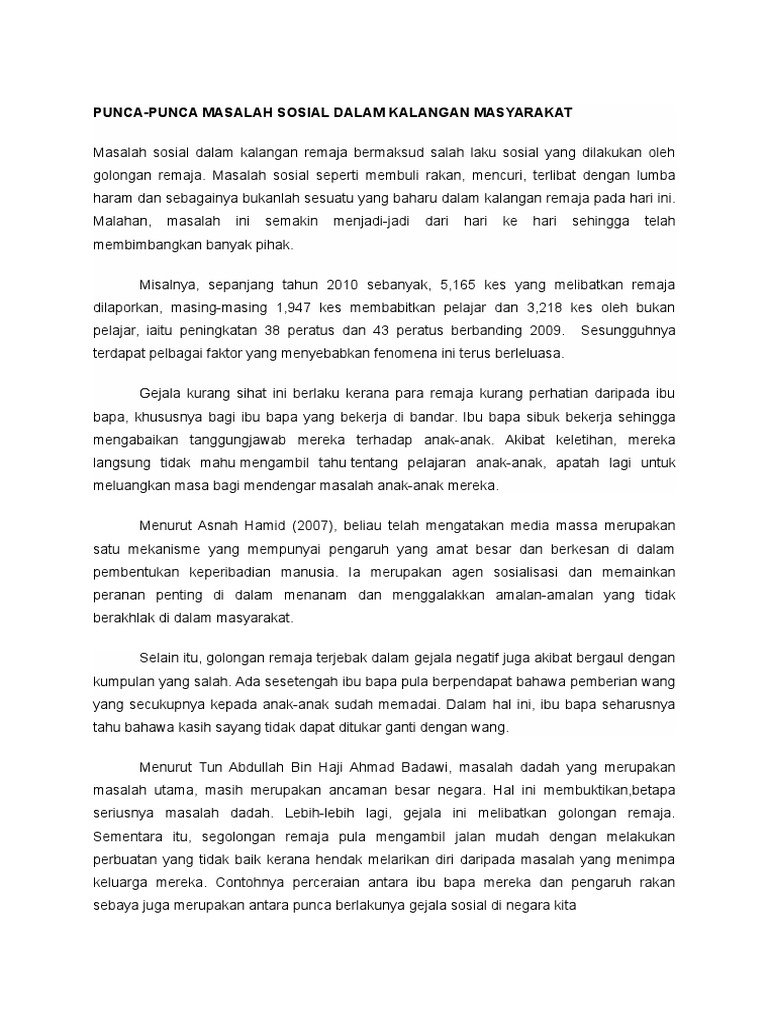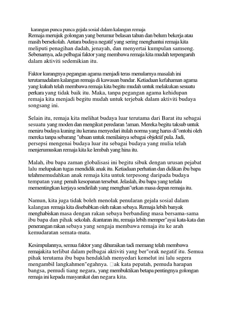 Karangan Punca Punca Gejala Sosial Dalam Kalangan Remaja Pdf
